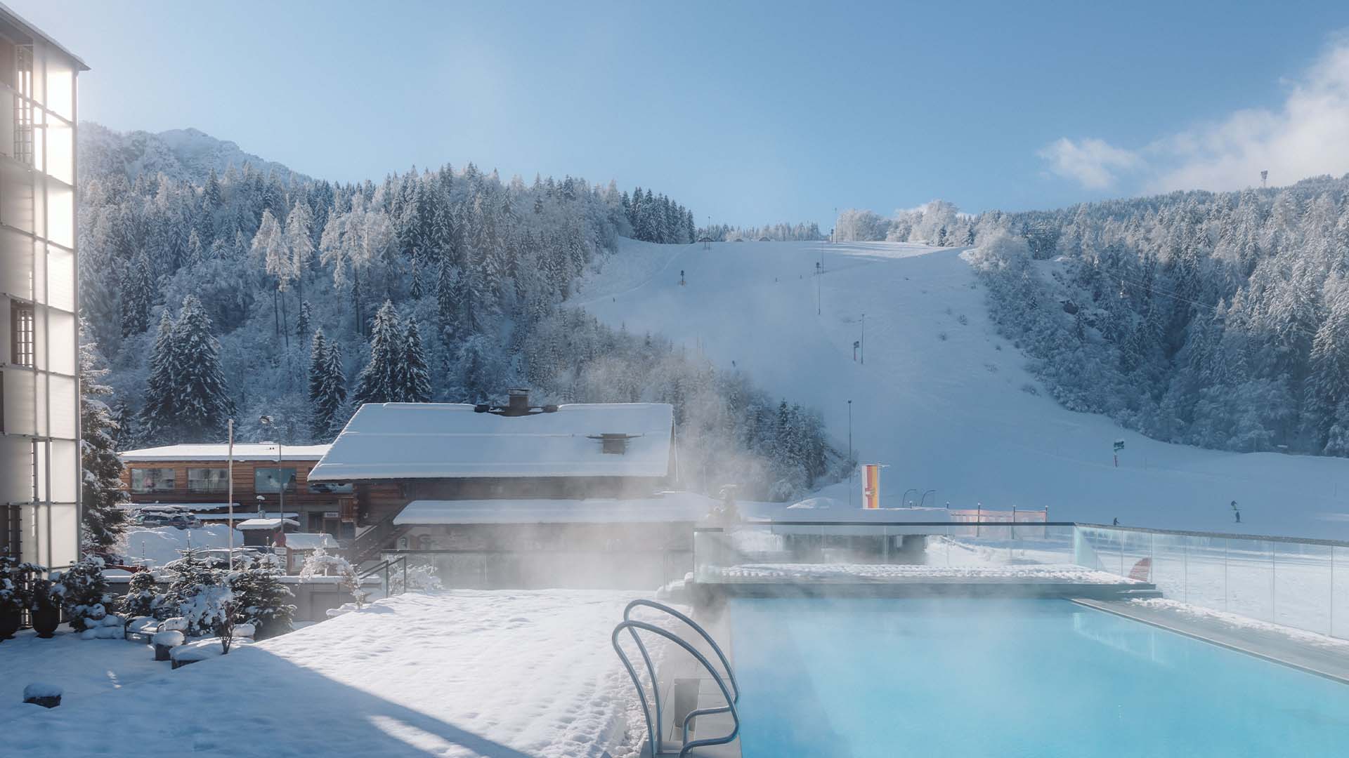 Immergiti nell’acqua calda e lascia che gli ugelli massaggianti sulla panca massaggiante della piscina esterna collegata facciano la loro magia. Quando sei pronto per un cambio di scenario, esci sulla splendida terrazza all’aperto e goditi la vista mozzafiato sulle montagne. Che tu preferisca la piscina coperta o all’aperto, questa struttura ricreativa ha qualcosa per tutti.